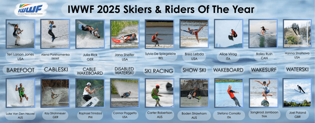 The IWWF is pleased to announce the 20245 IWWF Male & Female Skiers & Riders of the Year, selected by their respective sports disciplines’ councils. From this list of outstanding skiers & riders, the 2025 IWWF Male & Female Athletes of the Year, selected by the IWWF Executive Board.