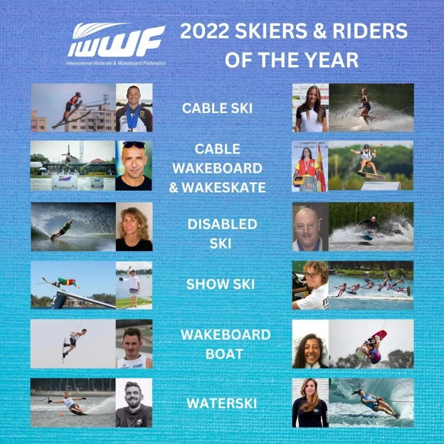 The IWWF is pleased to announce the 2024 IWWF Male & Female Skiers & Riders of the Year, selected by their respective sports disciplines’ councils. From this list of outstanding skiers & riders, the 2024 IWWF Male & Female Athletes of the Year, selected by the IWWF Executive Board.